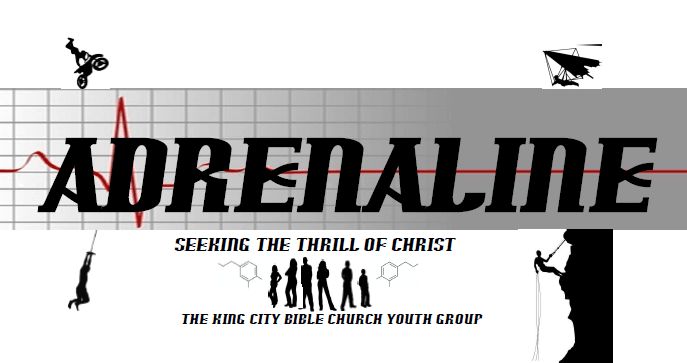 The King City Bible Church youth group, called "Adrenaline" meets Friday nights at the church from 6:00 PM to 8:00 PM. Dinner is provided at 6:00 PM. There are games and activities followed by a message towards the end of the evening. The program is designed for students 7th grade thru 12 grade.